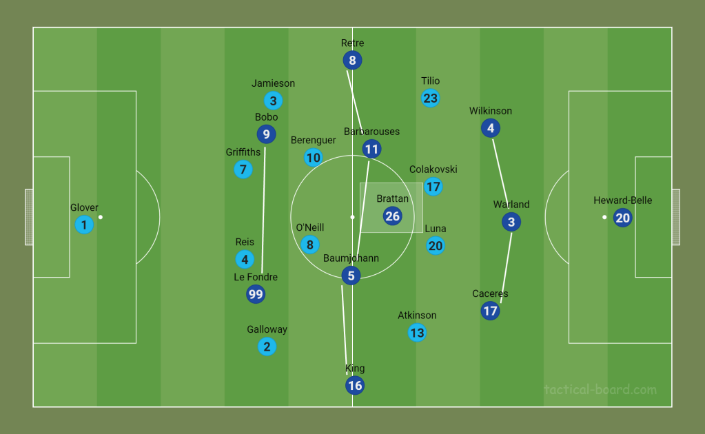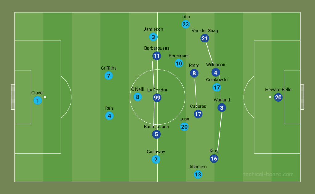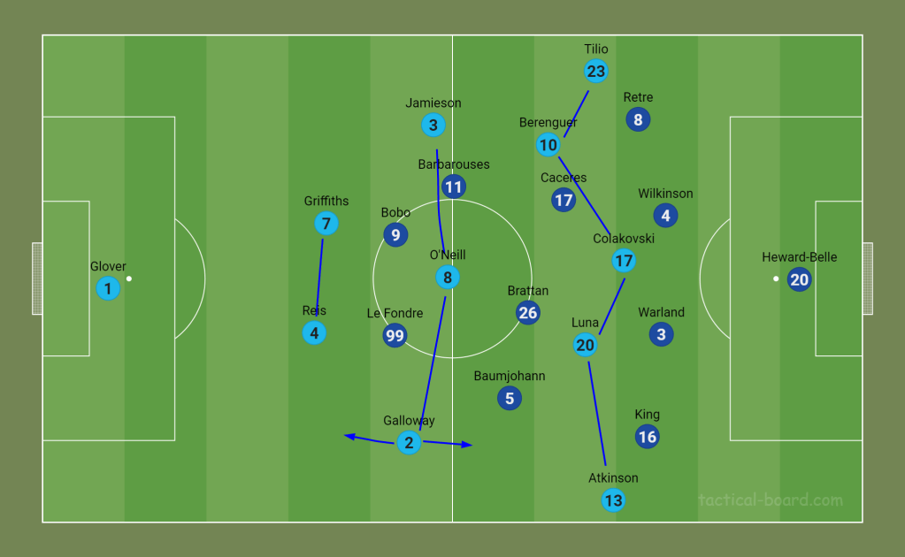 would leave big gaps in midfield and to cover them, Jamieson and Galloway would play as inverted fullbacks.
