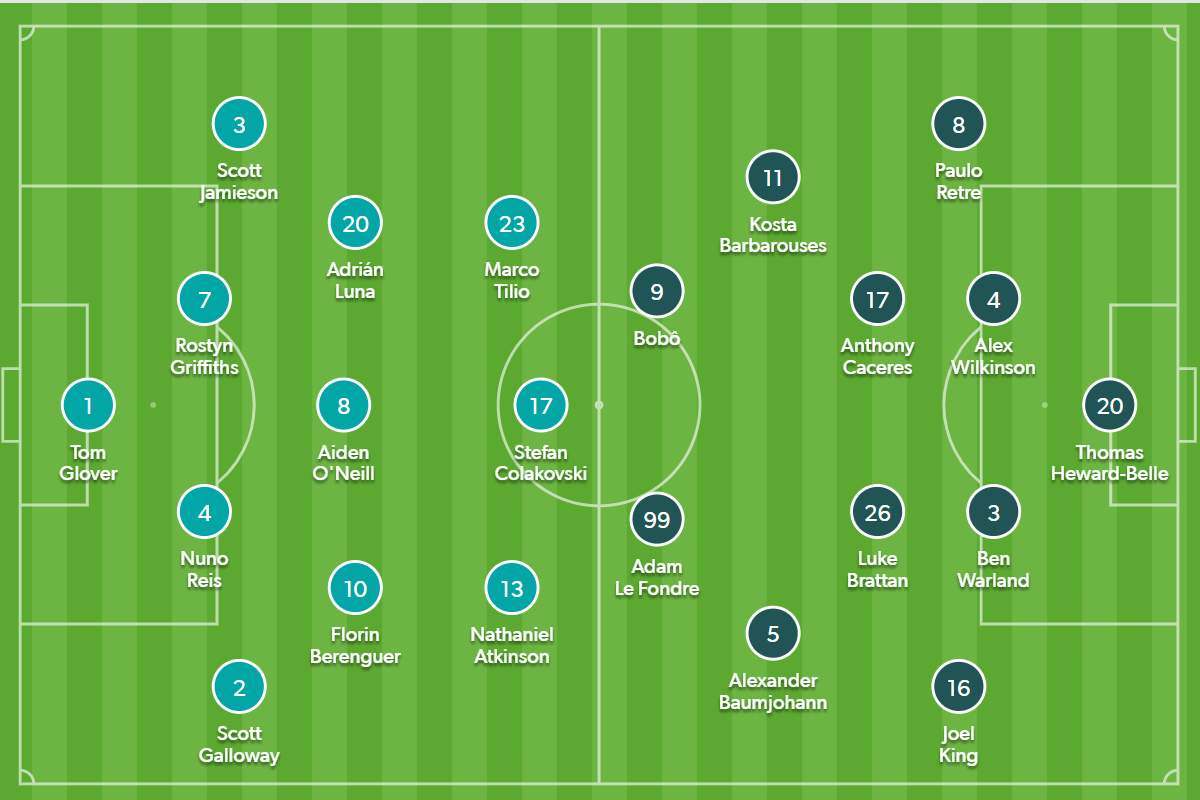 Patrick Kisnorbo set up his team in their usual 1-4-3-3 formation and made no changes from last match to the starting line-up. While Steve Corica also stuck to his usual formation 1-4-2-2-2 and made no changes to the starting line-up from the previous match.