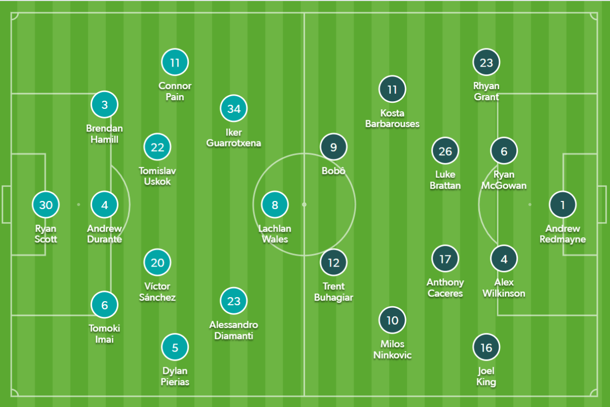 Patrick Kisnorbo set up his team in their usual 1-4-3-3 formation and made no changes from last match to the starting line-up. While Steve Corica also stuck to his usual formation 1-4-2-2-2 and made no changes to the starting line-up from the previous match.